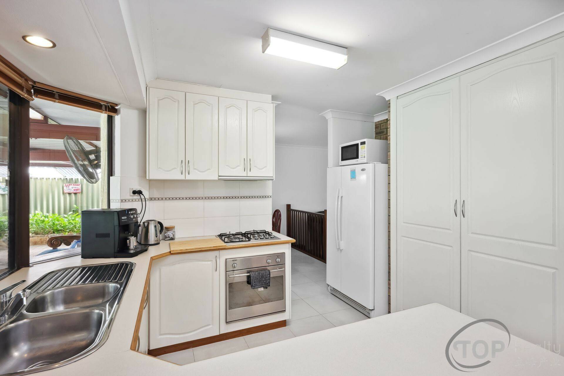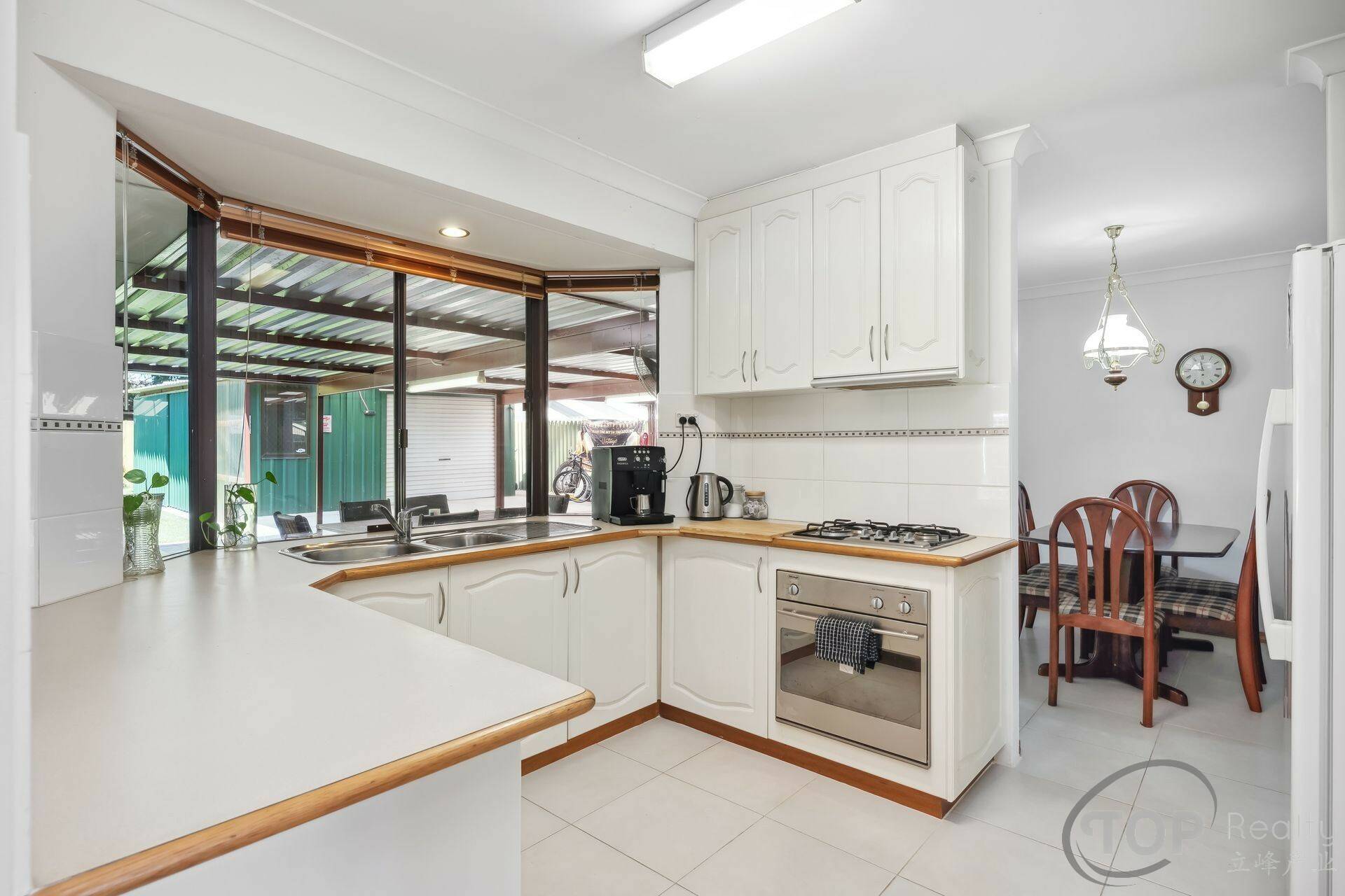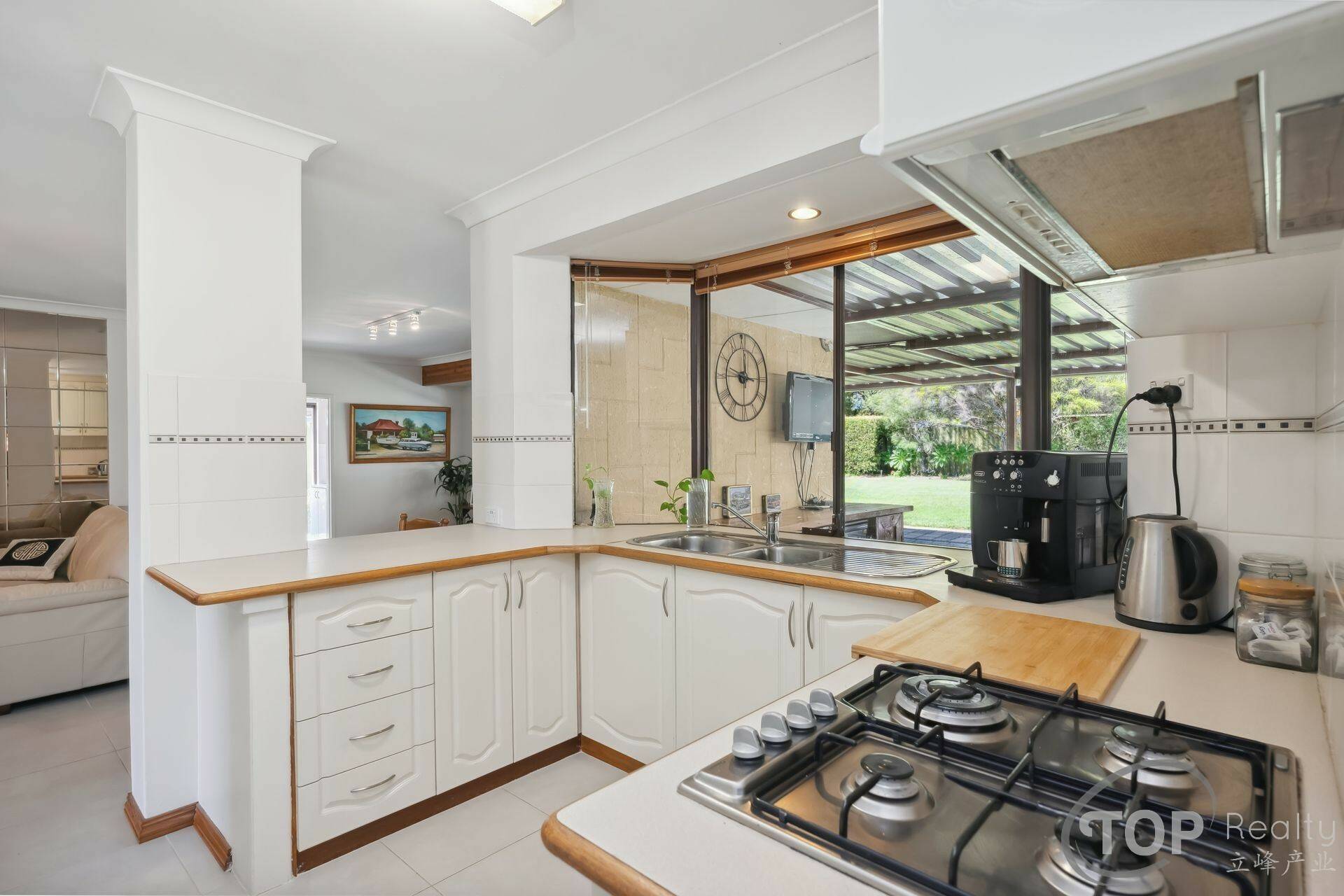 Kitchen equipped with gas cook top, generous storage cabinet & bench top space