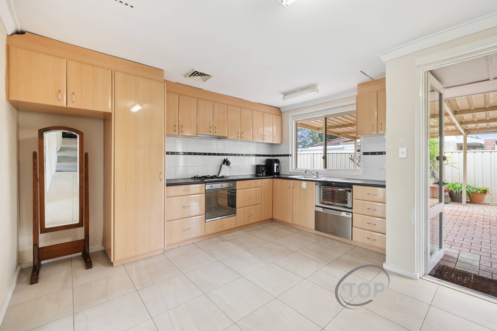 Updated kitchen well appointed with SMEG gas cook top & oven, Fisher & Paykel dishwasher & generous cabinet storage space