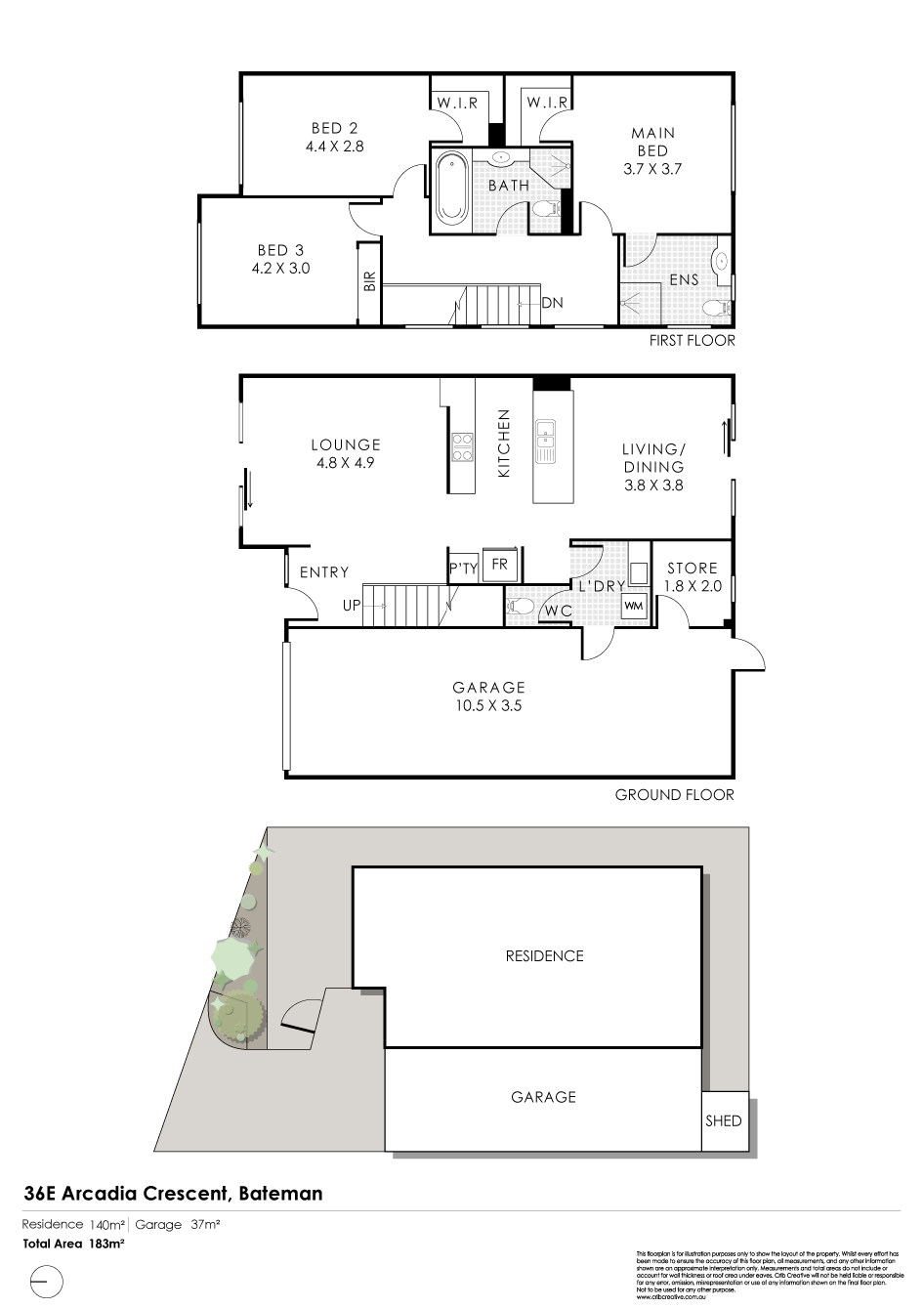 Built circa 2008, this modern townhouse offers substantial living space with approximately 183 sqm internal area laid out over two levels.