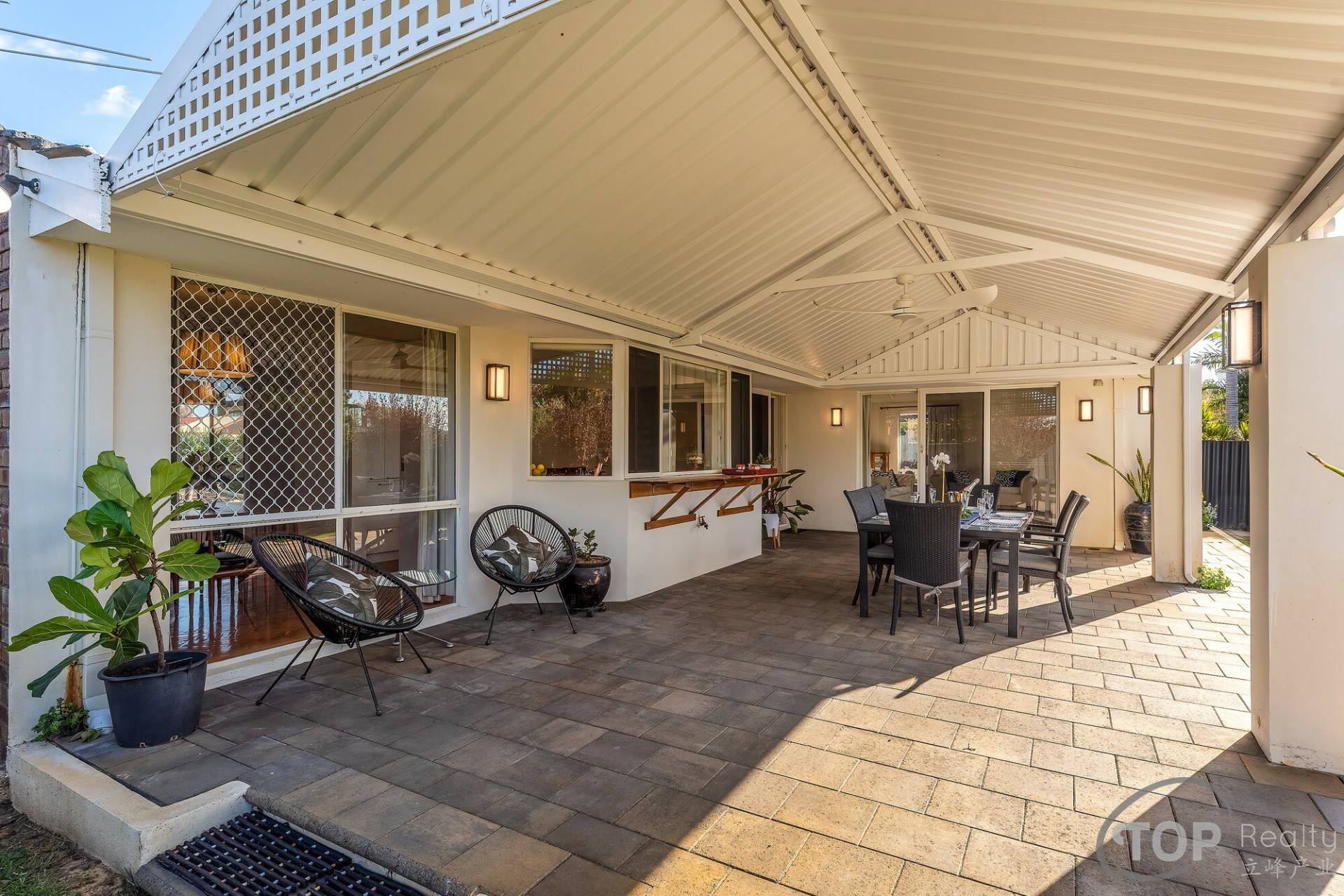 Large backyard with pitched patio for outdoor living