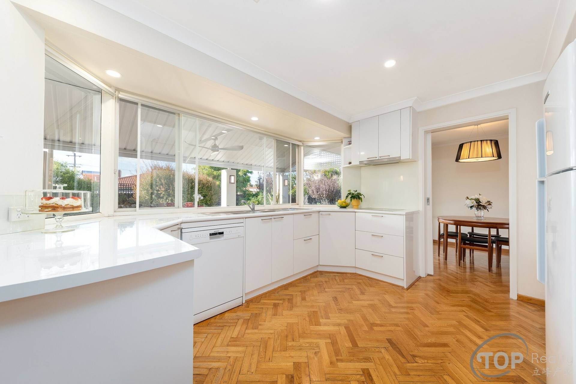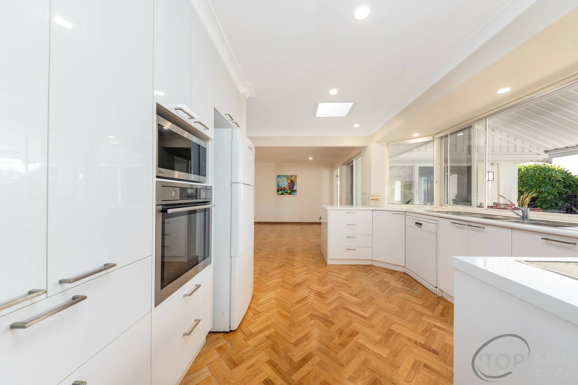 Large updated kitchen with electric cook top, AEG oven, Siemens dishwasher, plenty of storage cabinets, bench top space & aspect to the backyard to watch over your kids playing