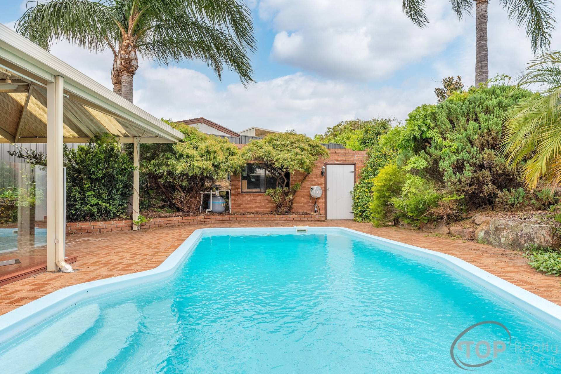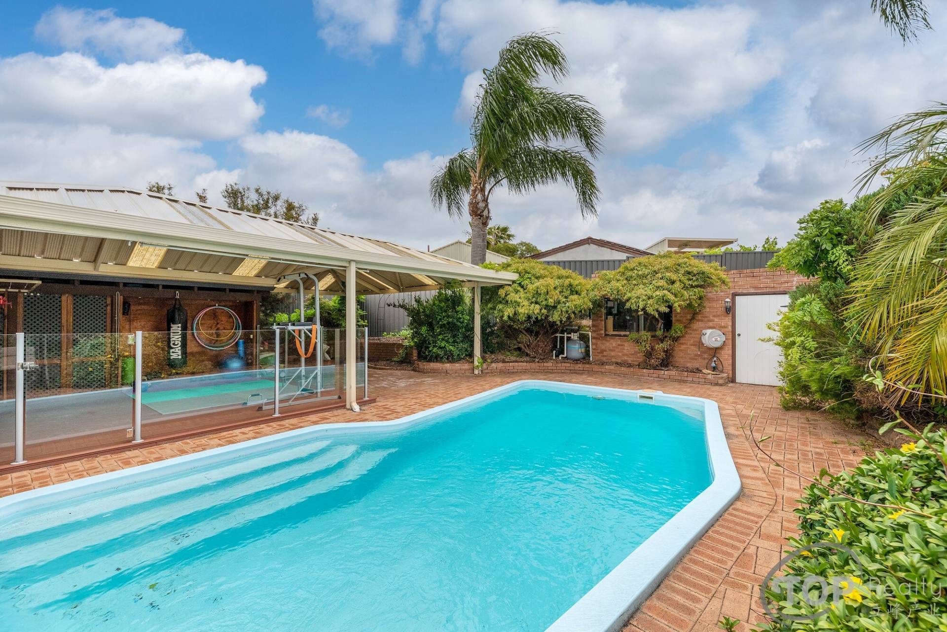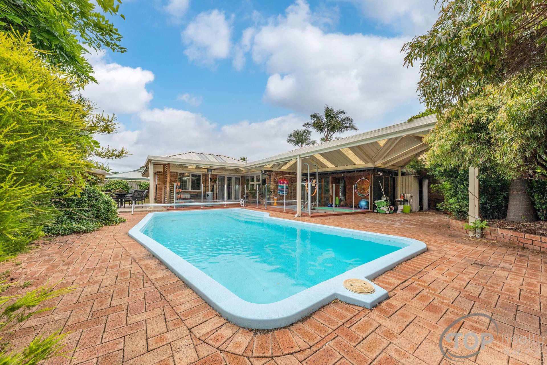 Sparkling pool with cover & glass fencing