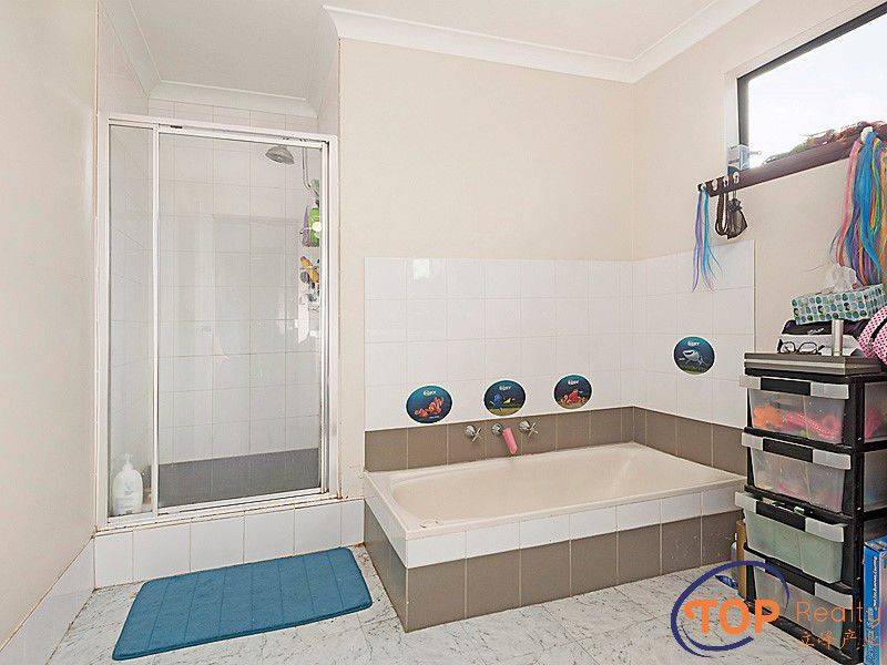 The alfresco area, with its timber-decked platform that overlooks the backyard, is a great place to sit out and relax. The large backyard includes plenty of space for kids to play, a large pool and a large shed.