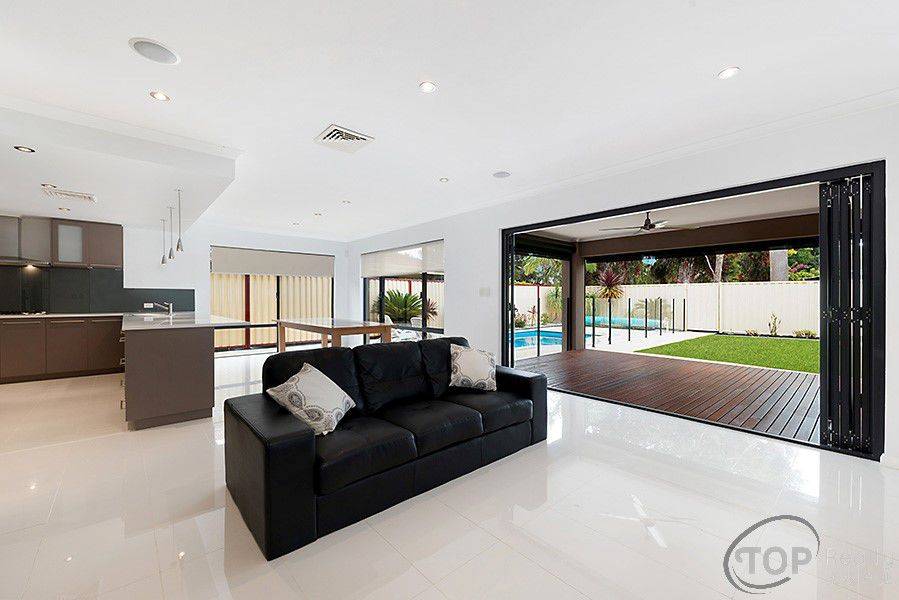 The property features a large chef’s kitchen with stone bench top and walk-in pantry, very large bedrooms all with robes, three bathrooms including two ensuites, a rear balcony to enjoy the views, three living areas plus an alfresco with decking and cafe blinds. Bifold doors in the family room open up the inside to the easy care backyard that comes with pool and water feature.