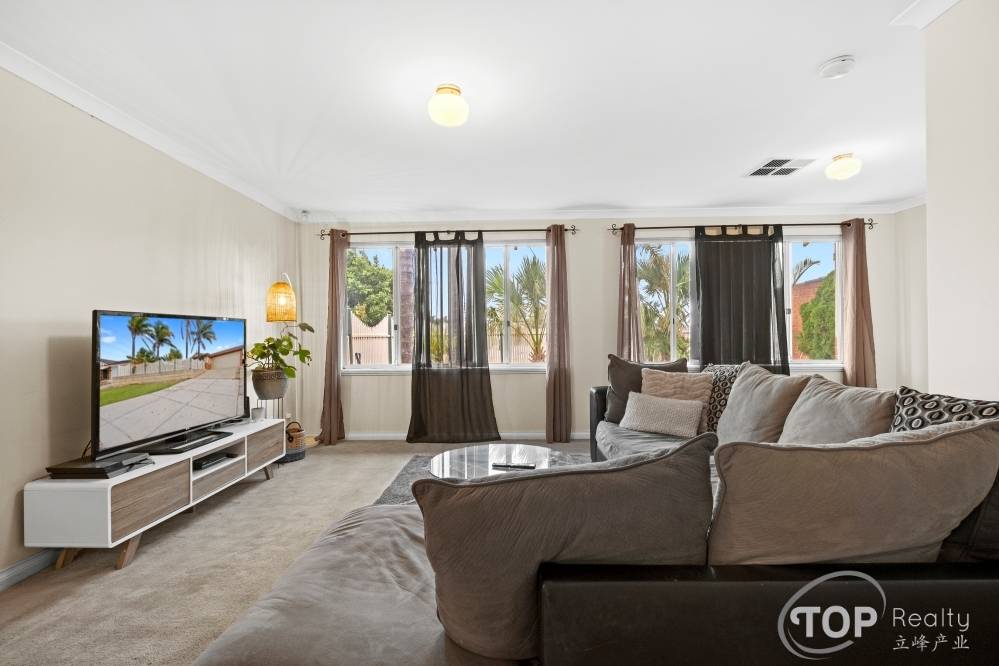 The property features three spacious bedrooms, two large living areas, two dining areas and two bathrooms including an ensuite. There is an open plan layout that consists of the family area, meals and kitchen; and this opens to the outdoor pergola area. Other features include ducted refrigerated air-con system and security alarm system.