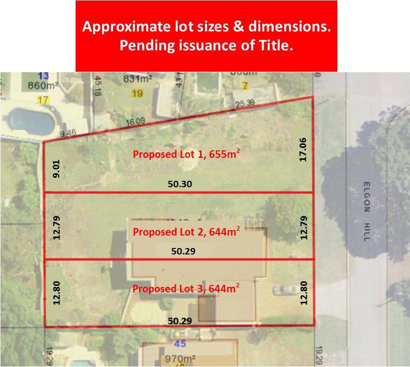 Subdivision application has been conditionally approved by the WAPC and the three blocks will be green title blocks. Proposed Lot 1 will be 655 sqm, and Lot 2 and 3 will be 644 sqm; the block sizes and dimensions are approximate and may be subject to change.
